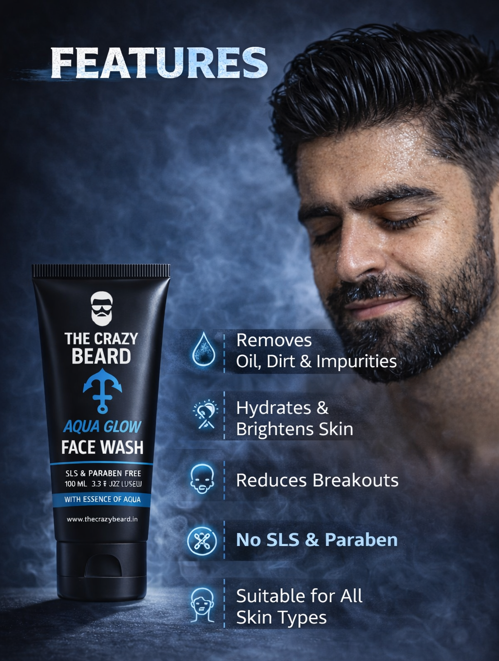 🌟 Why Choose THE CRAZY BEARD Aqua Glow Face Wash?